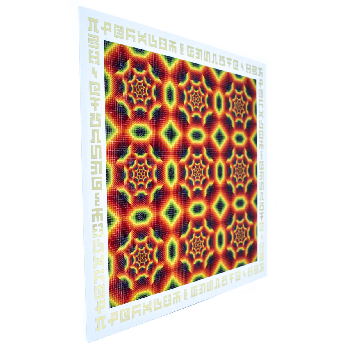 This full color heavyweight prayer card features gold foil secret writing border surrounding the Jewel Net of Indra painting by Allyson Grey completed in 1988.