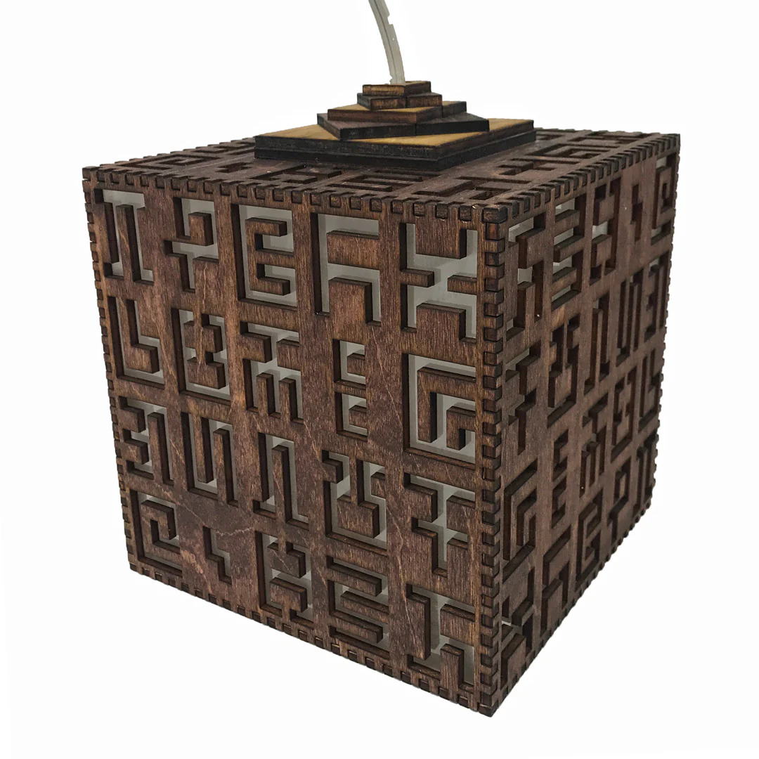 This beautiful hanging lamp is made from laser cut birch and is detailed with Allyson Grey's Secret Writing.